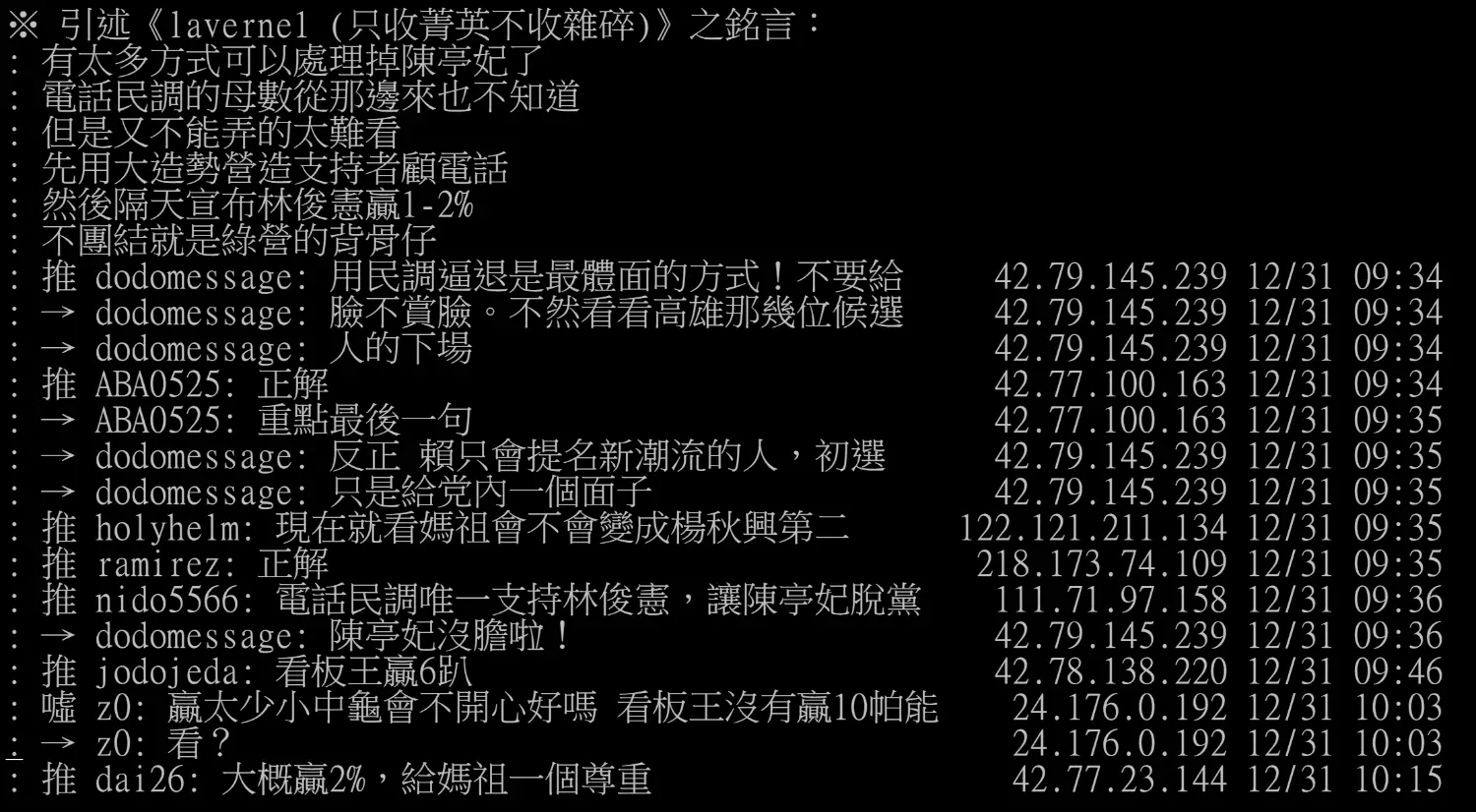 2026-01-15 14:51:14 推 Berotec: 奇怪昨天高雄初選結果不是這樣洗的 1F 111.254.64.182 01-15 14:51