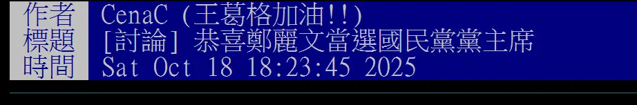 2026-01-17 14:06:31 推 Berotec: 你能舔鄭麗文跟黃國昌 你好意思問喔 5F 111.254.65.14 01-17 14:11