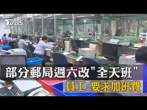 1.媒體來源: TVBS 2.完整新聞標題: 部分郵局週六改全天班 員工:要求加班費 3.完整新聞內文: 一例一休又出現人力調配上的勞資爭議!中華郵政表示明年二月起擬定新制度,打算將目 前全台287間 …