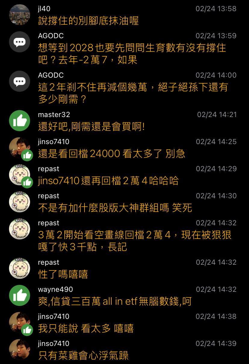 最近股房兩樣情,想問一下房版大神們的心情跟建議 例如房版每天吹多的Jinso,每天吹要噴了。 Jinso7414: 「台股滿32000就會準備下殺,租屋股神準備來房版哭」 Jinso7414: 「台 …