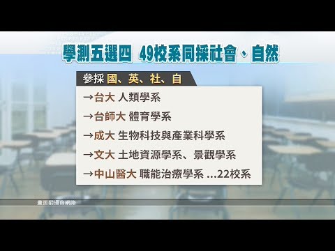 明年學測大變革 採計科目五科改四科 公視 2018/12/03 曹晏郡 郭俊麟 台北報導 。原先外界認 為文組、理組學生,就可以不用準備自然科或社會科,但從甄選會公布的各校簡章來看,還 是有49個校系 …
