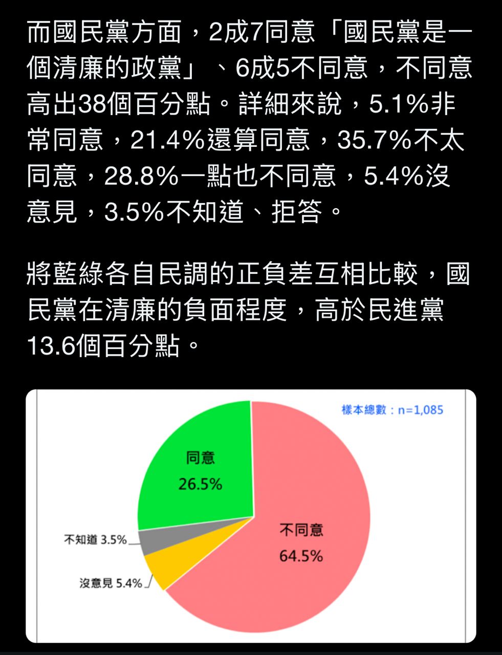 [討論] 最新民調:65%覺得國民黨不清廉 - HatePolitics 板