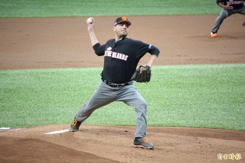 荷蘭先發投手柯德曼(Robbie Cordemans)。(特派記者羅志朋攝) 〔特派記者羅志朋/南韓首爾報導〕今天中午經典賽荷蘭隊和韓職二軍尚武隊進行公 辦熱身賽,荷蘭打線火力全開,全場敲出16支安打 …