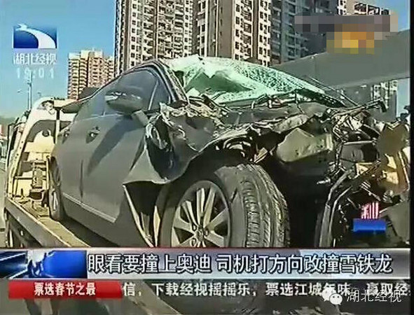 「奧迪太貴撞不起」 司機追撞瞬間轉向雪鐵龍 東森新聞/綜合報導 湖北省武漢市發生一起交通事故,事發地點在天河機場高速二通道的匝道處,一輛黑色雪 鐵龍轎車撞上水泥車,隨後停在路邊,又被另一輛藍色大貨車追 …