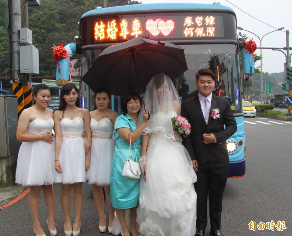 公車當禮車 大三生迎娶同班同學 〔記者林欣漢/基隆報導〕 基隆市公車司機廖文洋的兒子廖哲緯,今天迎娶同班同學何佩潔,公車處特別安排 兩輛公車當禮車,讓廖家搭載親友團前去迎娶新娘,廖哲緯說,對開公車有興 …