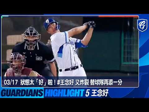 這球打得好王念好 今天身體似乎不舒服(戴口罩) 八局下半代打,擊出左中外野之間全壘打 為王念好官辦熱身賽第二支全壘打 目前 富邦悍將2:3樂天桃猿 邦邦金孫讚啦