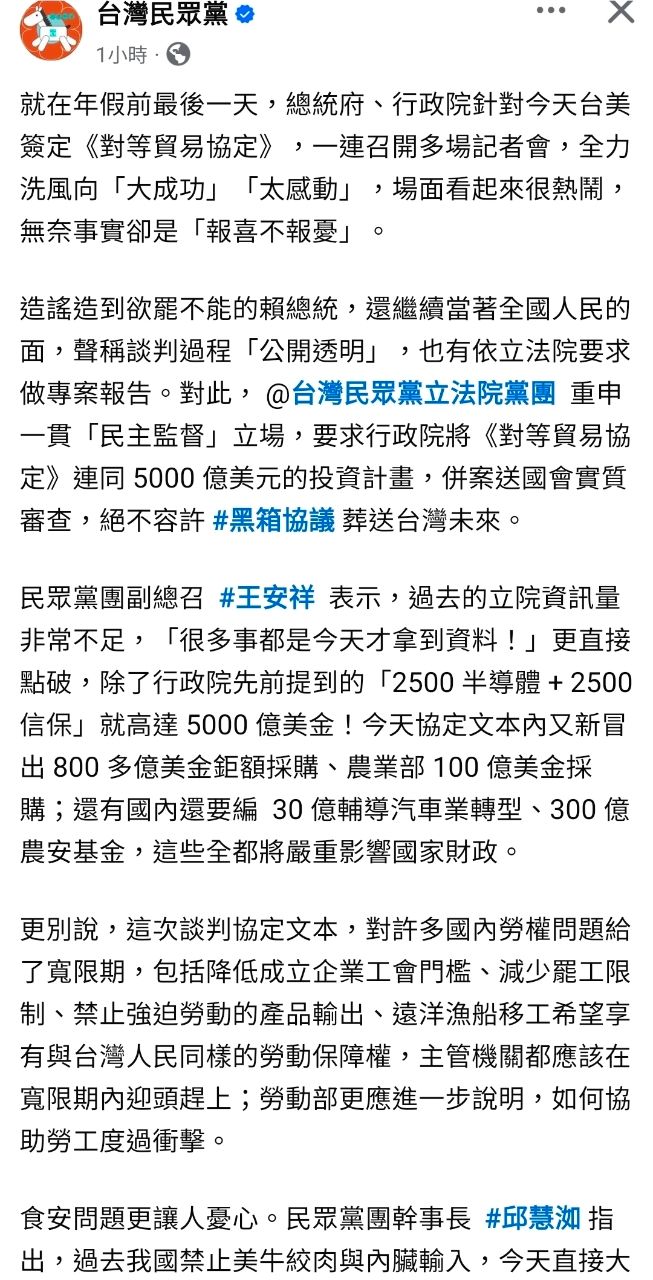 2026-02-13 17:50:37 → Rrrxddd: 藍白都覺得是賣國耶 塔綠斑不要活在同溫層 好嗎 2F 119.14.69.40 02-13 17:51