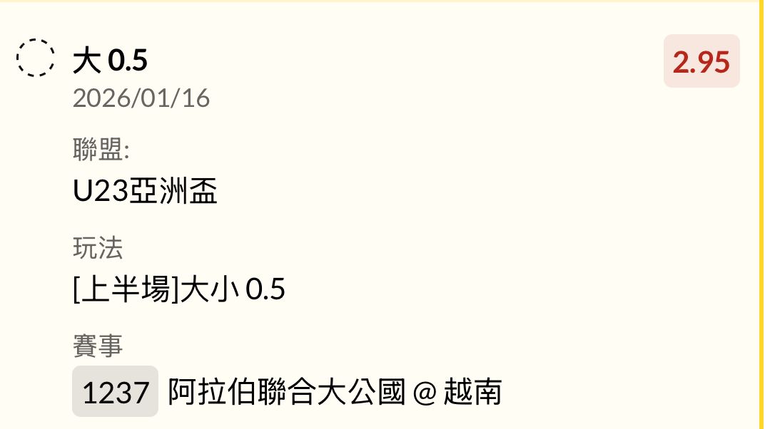 [LIVE] U23足球 阿拉伯 @ 越南 場中 - SportLottery 板