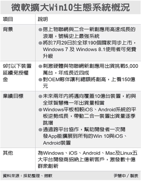 1.原文連結(必須檢附): 微軟免授權金 讓利台廠150億 | 科技產業 | 產經 | 聯合新聞網 微軟為加速提升Windows 10新系統在行動、雲端裝置滲透率,將祭出9吋以下裝置免授權金策略,藉此 …