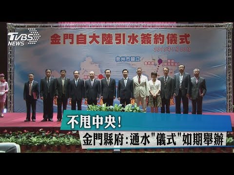 1.媒體來源:TVBS 2.完整新聞標題:不甩中央! 金門縣府:通水「儀式」如期舉辦 3.完整新聞內文: 記者 陳靜宜 / 攝影 尹德鈺 報導2018/07/29 14:51 金門自大陸引水的通水典禮 …