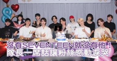 沒有SEVENTEEN就沒有他! 隊長一席話讓粉絲感動淚哭 媒體名稱:娛樂星聞 新聞連結: 新聞全文(連結為影片,內文為逐字稿): 南韓男團SEVENTEEN 2015年出道,合約原定去年到期,但在 …