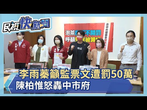 [新聞] 李雨蓁籲監票文遭罰50萬 陳柏惟怒轟中市府 - HatePolitics 板