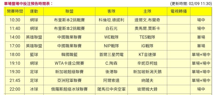 [官方] 115-02-09 單場場中 - SportLottery 板