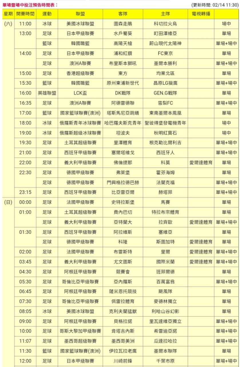 [官方] 115-02-14 單場場中 - SportLottery 板