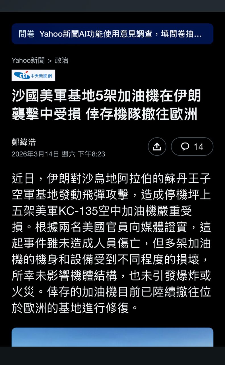 → gn02118620: 安啦 照軍武版講法 伊朗發射台已經被炸沒了 很快伊朗就會投降 別怕CC 51F 03-19 08:02