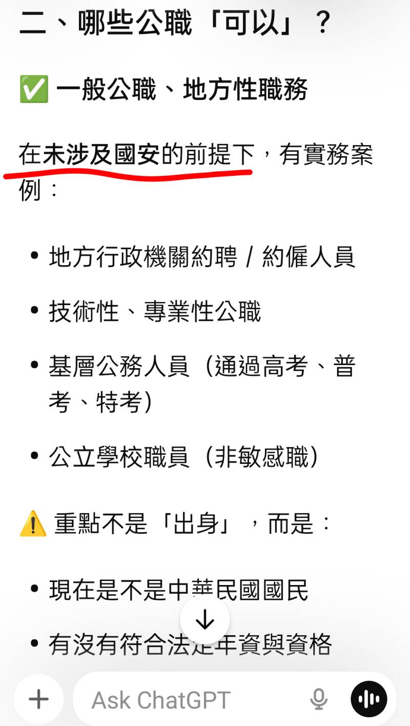 : 八卦仔網軍真是笑死.就是給中共沒有伸手台灣機會啊.共匪國人能當台灣的公職.民主跟國家還要不要了