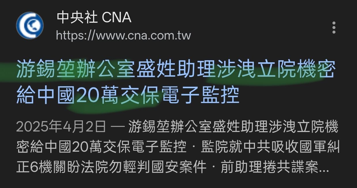 2026-04-02 16:21:09 推 kaminari22tw: 上一次民進黨共諜20萬交保