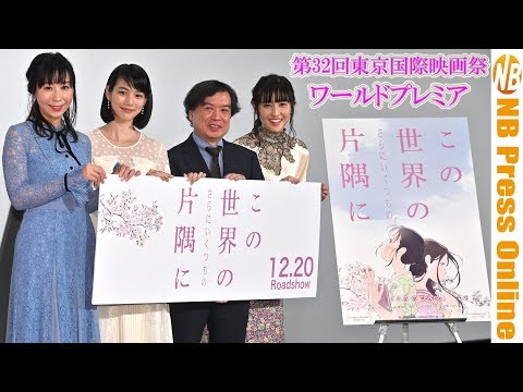 今天在六本木舉辦的東京國際電影展倒數第二天 特別招待作品"在世界的角落"加長版舉辦全球首映會 擔任主角的能年玲奈のん 白木リン的聲優岩井七世 主題曲和劇中樂曲擔當コトリンゴ 片渕須 …