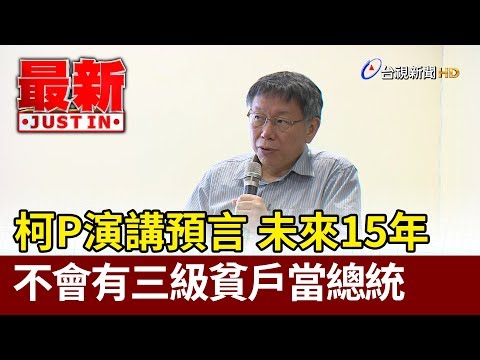 1.新聞網址: 2.新聞來源︰ 台視新聞 3.新聞內容︰ 柯P演講預言 未來15年不會有三級貧戶當總統【最新快訊】 2019.08.20【最新快訊】為了推廣「節葬、簡葬」殯葬新文化,台北市長柯文哲今( …