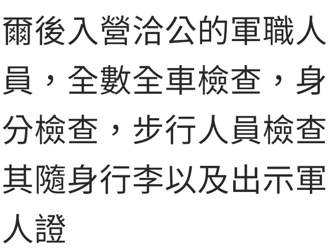 2025-11-23 09:59:35 → pigpigcom123: 衛哨確依規定檢查 只是礙於營內太多人不可能記住所有人 所以即使資料都對 也辨識不出車上的不是本人.... 4F 39.10.61.149 11-23 11:42