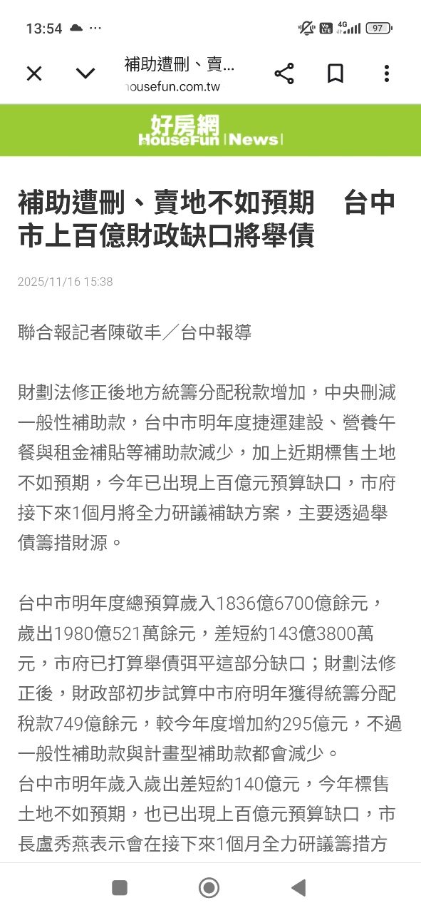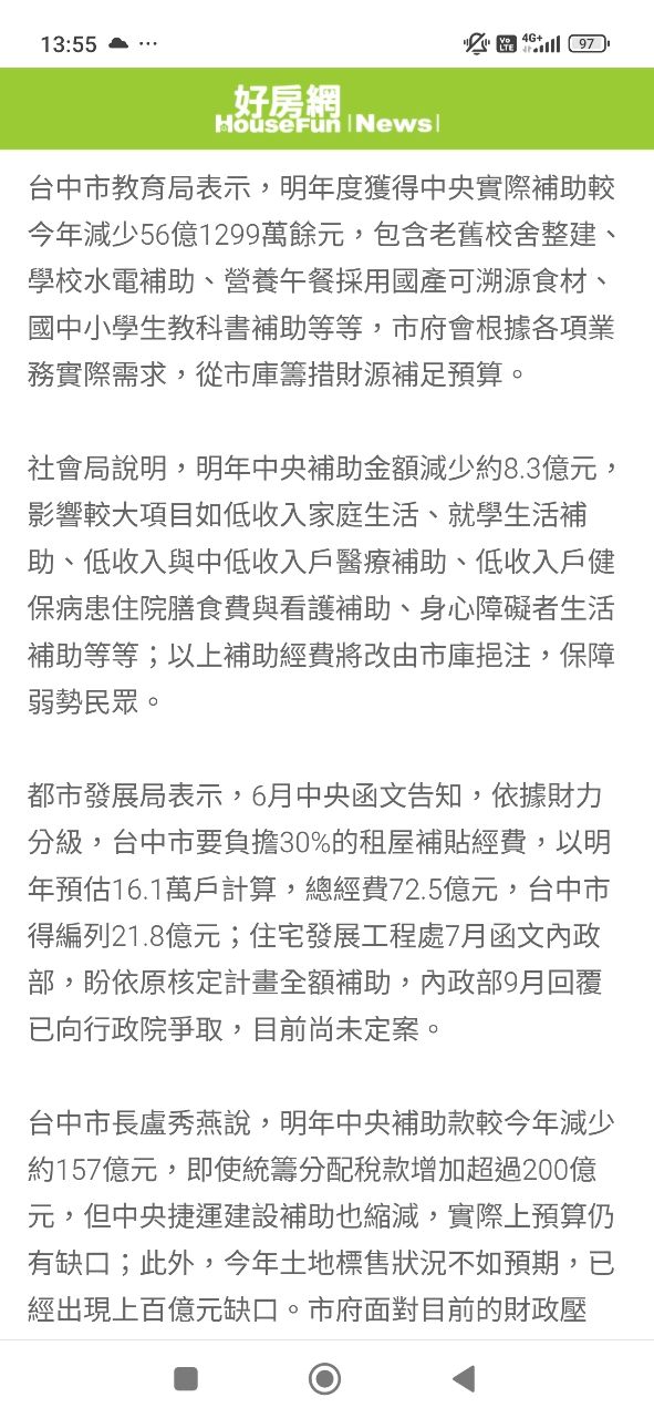 政府各種支出補貼都要稅收,土地流標賣不出去!以前都是挖房地產土地的錢去補助營養午餐、租金!