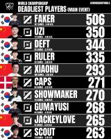 [閒聊] 世界賽最殺的選手排行 - LoL 板