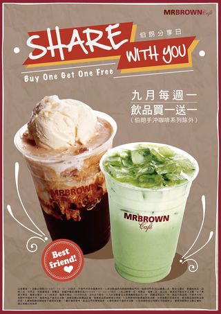 [情報] 伯朗咖啡館9月週一飲品買一送一 - Actuary 板