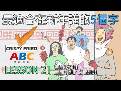 鹽酥英語 LESSON 21: 春節來了哇!三面夏娃 豬面娃娃: 春節就快要到了 大家趕快趁回家拜年前學幾句英文吧 這集一樣吸很多