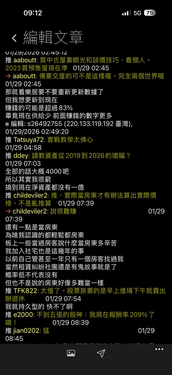 2026-01-27 11:43:00 → s26492755: 房子不只投資屬性 多數屋主心裡還住著小投資客 賣的時候還不是市價賣賺一波 86F 01-27 14:14
