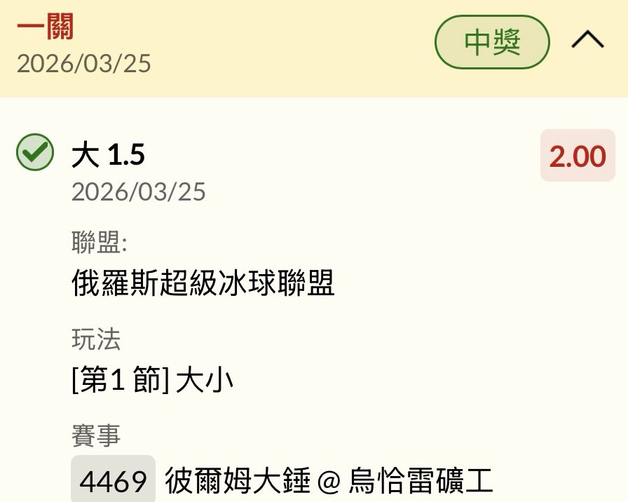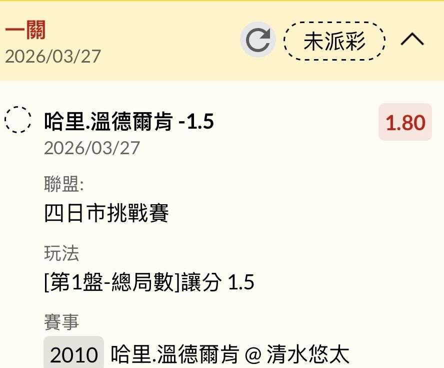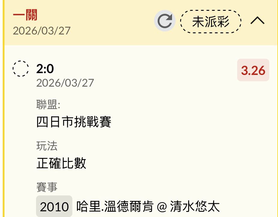 2026-03-26 20:00:07 推 sulaeric: 劇本又來了。第一盤8.5小高賠 78F 101.10.81.26 03-26 20:34