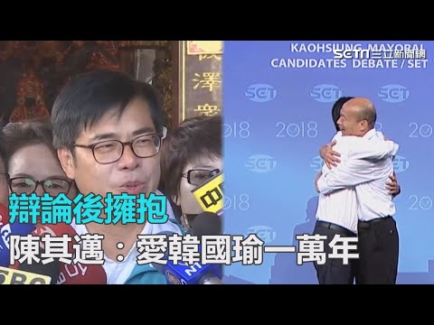 辯論後擁抱 陳其邁:愛韓國瑜一萬年 影片: 三立新聞網 記者張之謙/台北報導 高雄市長候選人陳其邁、韓國瑜兩人昨(19)日晚間在三立進行辯論,雖然過程中兩人激 烈交鋒,但結束後雙方仍走到台前握手並擁抱 …