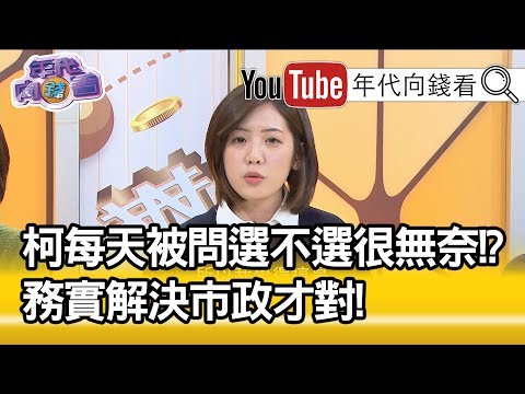 精彩片段》黃瀞瑩:柯市長解決市政問題是最重要【年代向錢看】 黃瀞瑩:其實大家看到這個畫面,柯巿長每天早上被問的問題,他表情己經變得非常無奈 了。現在大家的各種問題,都是要不要選,是不是不要選,是不是要 …