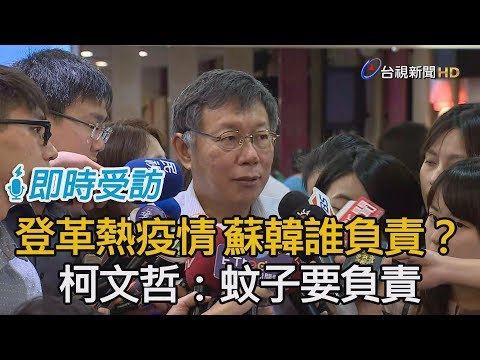 今日受訪影片連結: 記者:登革熱是韓國瑜要負責?還是蘇貞昌要負責? 柯文哲:蚊子要負責