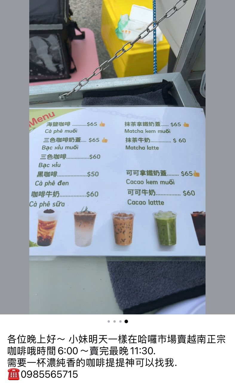 : 左營哈囉市場週六日早上都有一攤車在賣,正統的越南咖啡,如果距離你不會太遠的話